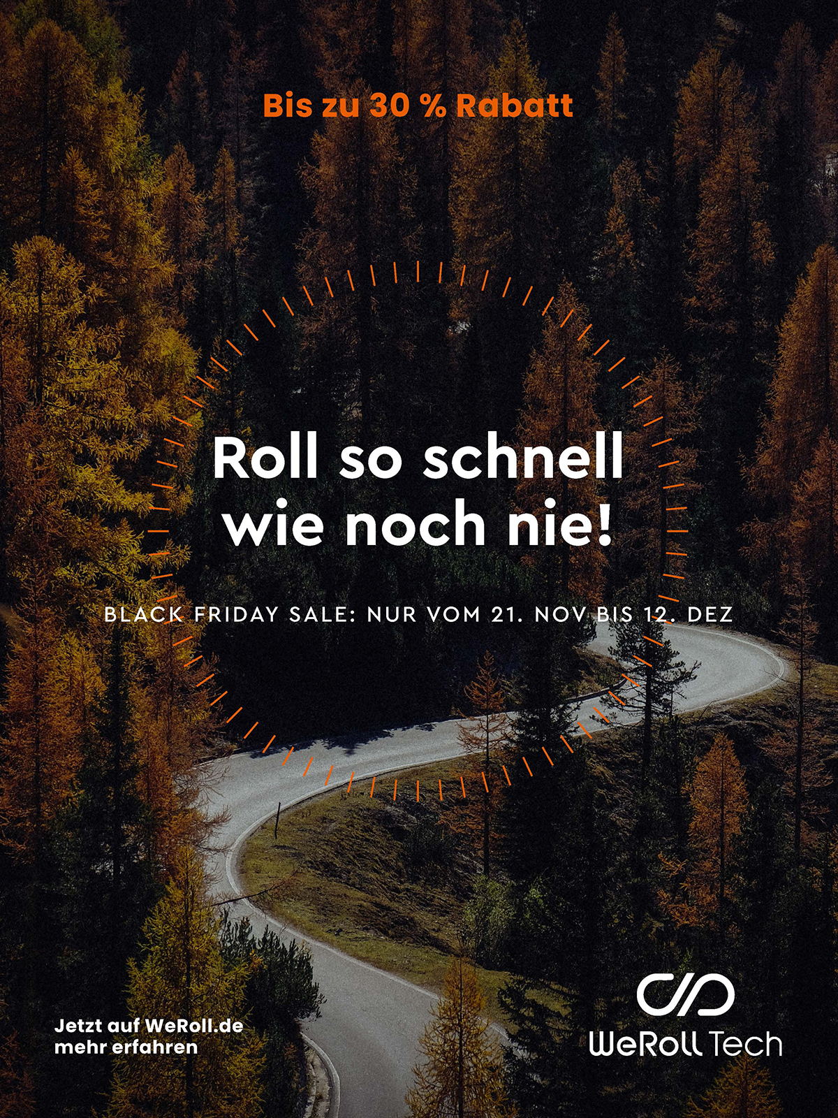 Der Black Friday steht für die besten Deals des Jahres. Bei Weroll bedeutet das: nicht nur den perfekten E-Scooter zu einem unschlagbaren Preis, sondern ein komplettes Service-Paket, das Maßstäbe setzt. Wir schenken Dir nicht nur Zeit und Geld, sondern vor allem Sicherheit und ein rundum sorgenfreies Fahrerlebnis.